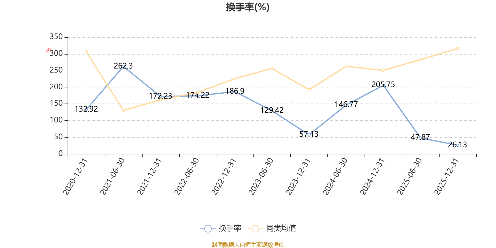 截至2025年12月31日,基金最近一年换手率约74.09%,持续4年低于同类均值。