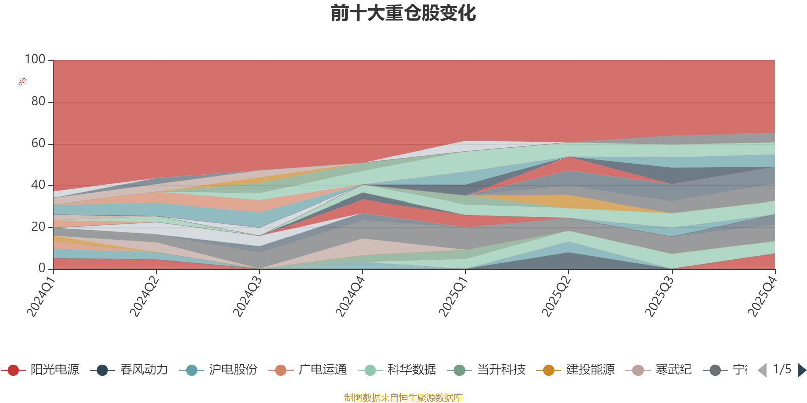 截至2025年末,基金十大重仓股分别是思源电气、江淮汽车、宁德时代、阳光电源、亿纬锂能、科华数据、三花智控、璞泰来、东山精密、胜宏科技。