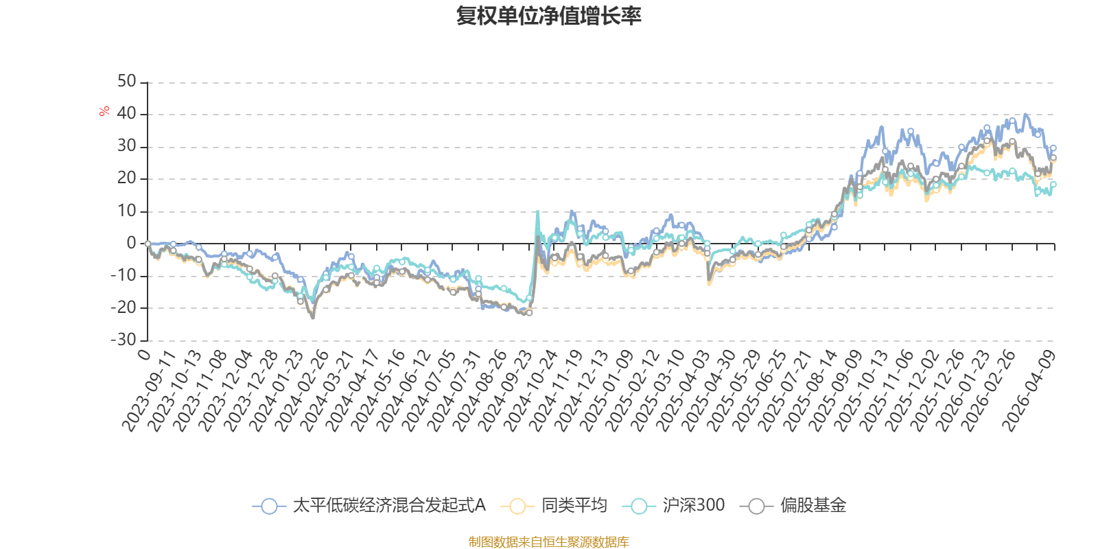 截至4月9日,太平低碳经济混合发起式A近三个月复权单位净值增长率为-2.44%,位于同类可比基金406/689;近半年复权单位净值增长率为-4.75%,位于同类可比基金517/689;近一年复权单位净值增长率为45.78%,位于同类可比基金253/685。