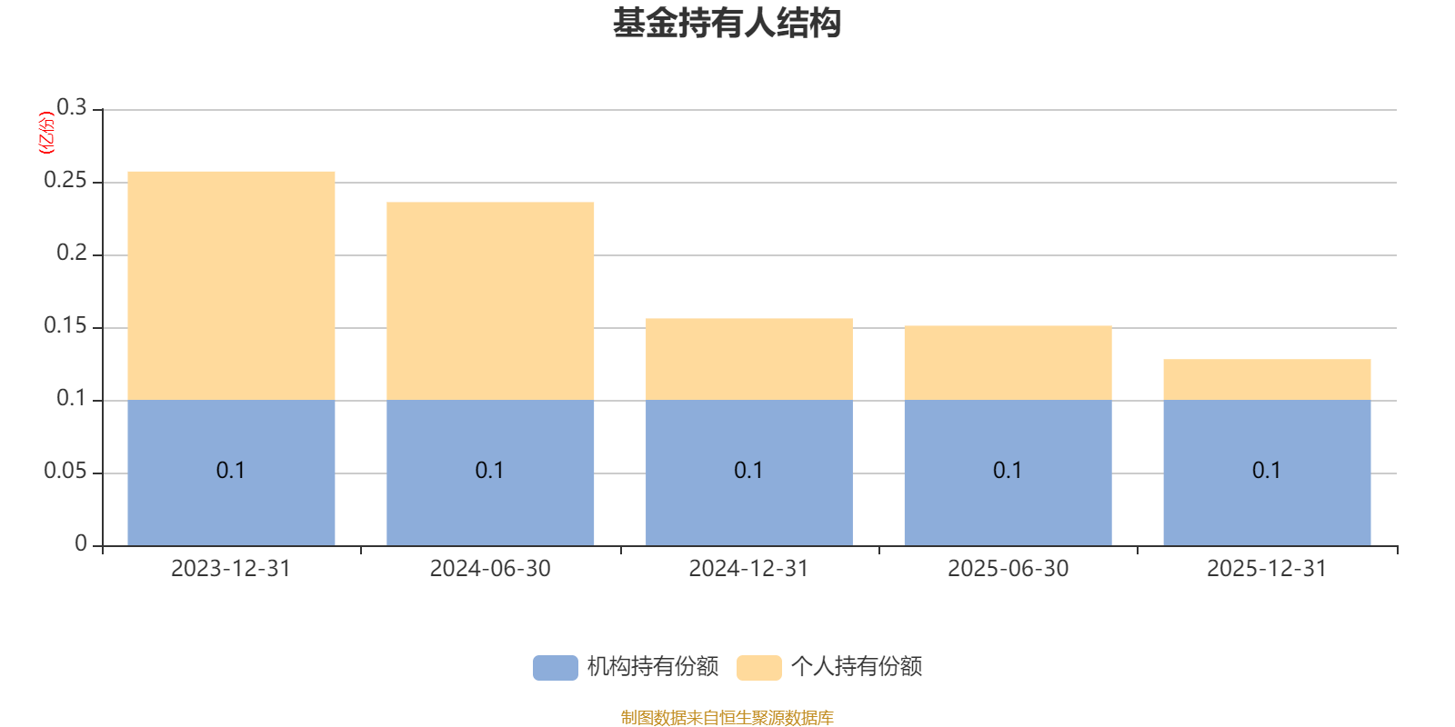 截至2025年12月31日,基金持有人共计134户,合计持有1275.99万份。其中管理人员工持有13.85万份,占比1.09%,机构持有份额占比78.37%,个人投资者占比21.63%。
