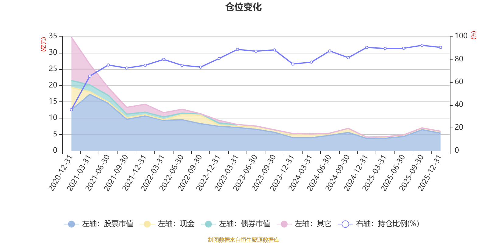 据定期报告数据统计,近三年平均股票仓位为86.53%,同类平均为85.83%。2025年三季度末基金达到92.24%的最高仓位,2020年末最低,为35.92%。