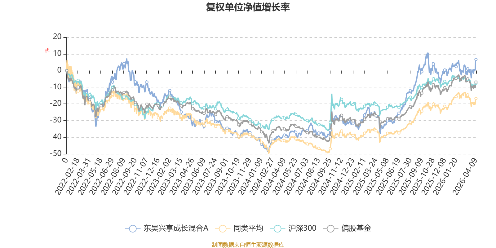 截至4月9日,东吴兴享成长混合A近三个月复权单位净值增长率为4.21%,位于同类可比基金111/621;近半年复权单位净值增长率为-3.59%,位于同类可比基金440/621;近一年复权单位净值增长率为70.61%,位于同类可比基金87/618;近三年复权单位净值增长率为47.76%,位于同类可比基金74/559。