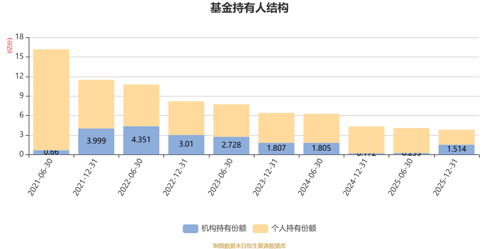 截至2025年12月31日,基金持有人共计5195户,合计持有3.83亿份。其中管理人员工持有50.35万份,占比0.13%,机构持有份额占比39.56%,个人投资者占比60.44%。