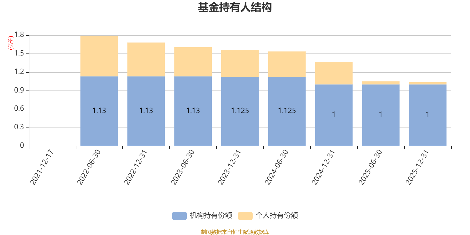 截至2025年12月31日,基金持有人共计132户,合计持有1.03亿份。其中管理人员工持有8.51万份,占比0.08%,机构持有份额占比96.62%,个人投资者占比3.38%。
