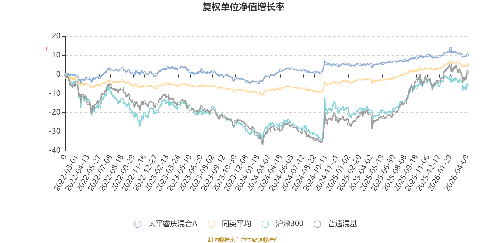 截至4月9日,太平睿庆混合A近三个月复权单位净值增长率为-0.92%,位于同类可比基金501/629;近半年复权单位净值增长率为-0.04%,位于同类可比基金451/629;近一年复权单位净值增长率为5.81%,位于同类可比基金399/629;近三年复权单位净值增长率为5.69%,位于同类可比基金452/581。