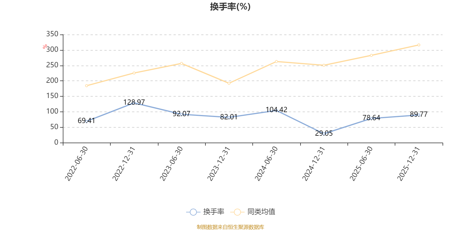 截至2025年12月31日,基金最近一年换手率约167.34%,持续低于同类均值。