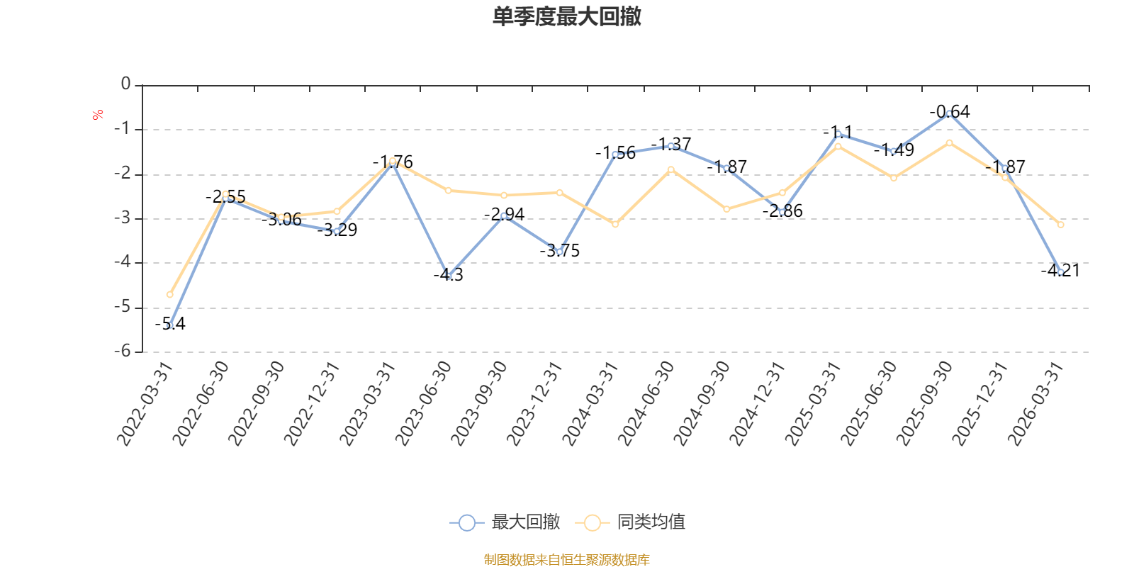 截至4月9日,基金近三年最大回撤为8.94%,同类可比基金排名393/534。单季度最大回撤出现在2022年一季度,为5.4%。