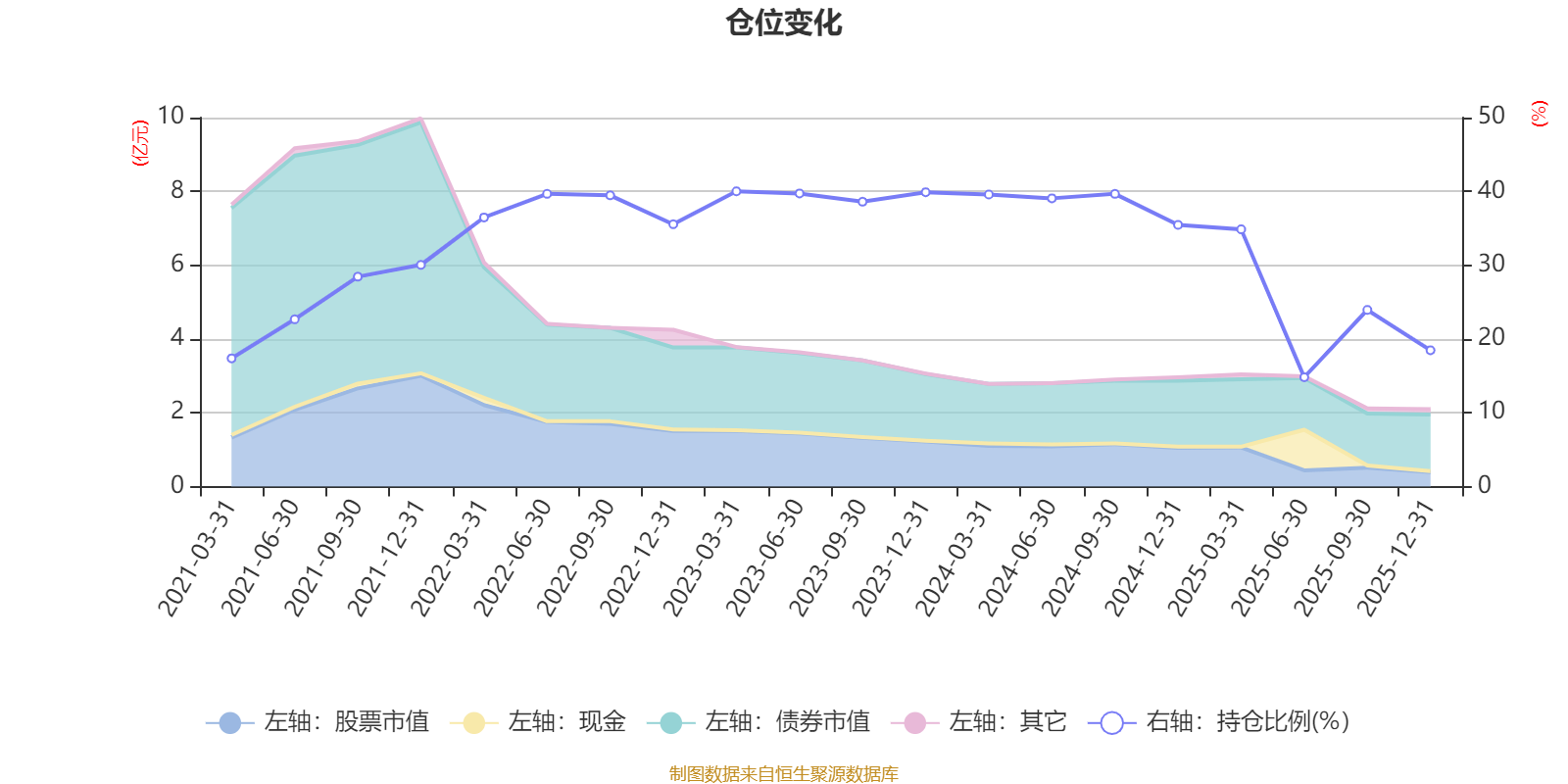 据定期报告数据统计,近三年平均股票仓位为33.67%,同类平均为19.2%。2023年一季度末基金达到40.01%的最高仓位,2025年上半年末最低,为14.82%。