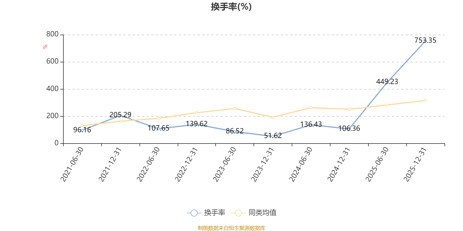 截至2025年12月31日,基金最近一年换手率约1041.57%,持续1年高于同类均值。