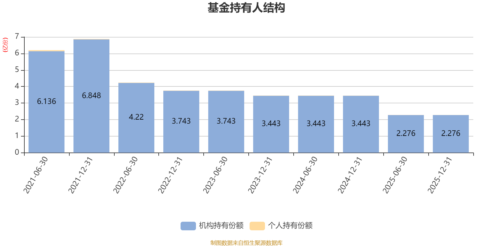 截至2025年12月31日,基金持有人共计161户,合计持有2.28亿份。其中管理人员工持有1141.33份,机构持有份额占比99.79%,个人投资者占比0.21%。