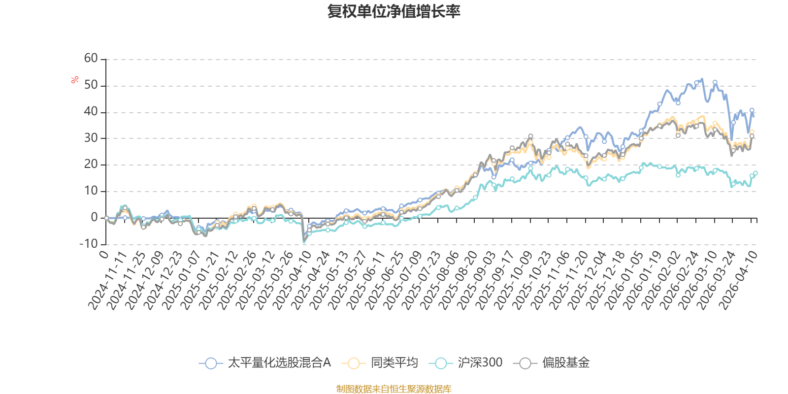 截至4月9日,太平量化选股混合A近三个月复权单位净值增长率为-0.12%,位于同类可比基金293/689;近半年复权单位净值增长率为14.29%,位于同类可比基金93/689;近一年复权单位净值增长率为45.13%,位于同类可比基金262/685。