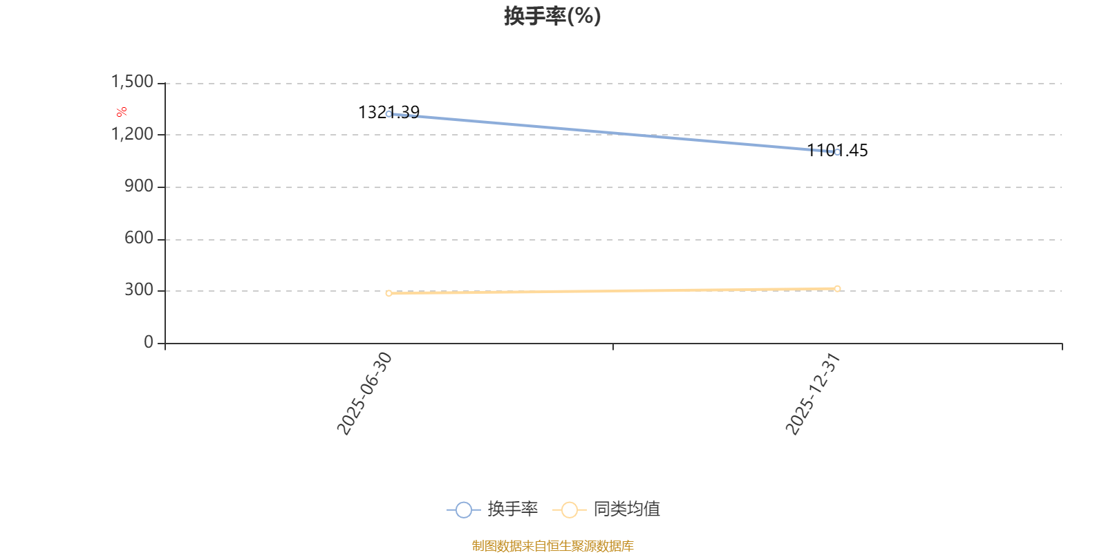 截至2025年12月31日,基金最近一年换手率约2263.87%,持续高于同类均值。