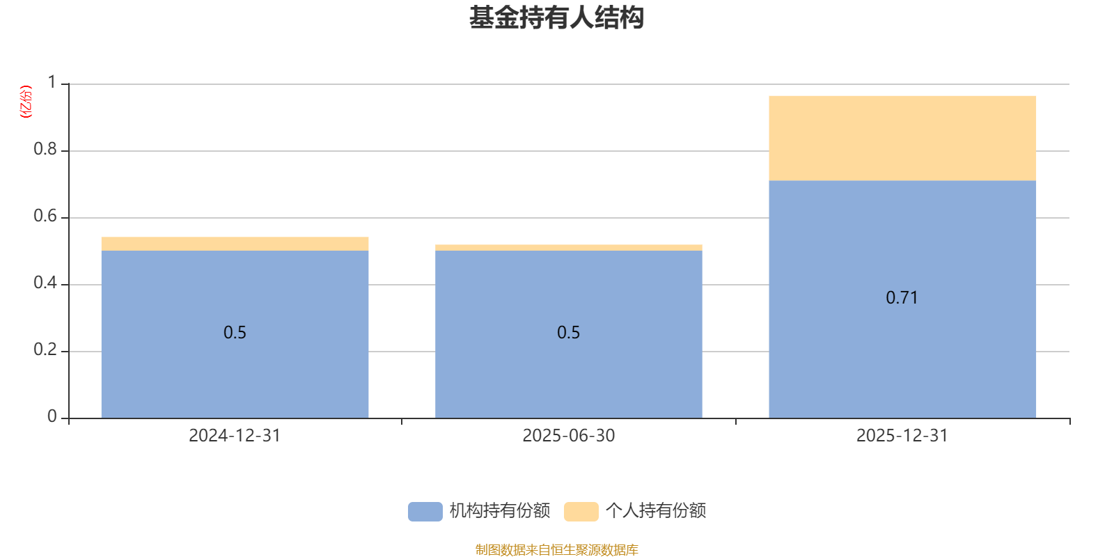 截至2025年12月31日,基金持有人共计238户,合计持有9631.14万份。其中管理人员工持有438.62万份,占比4.55%,机构持有份额占比73.74%,个人投资者占比26.26%。