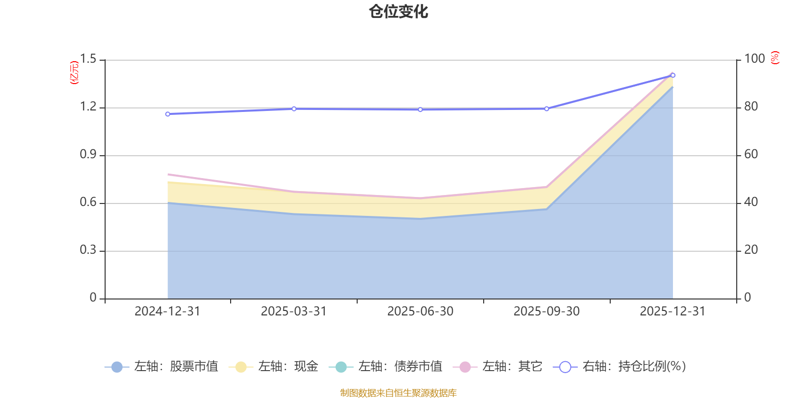 据定期报告数据统计,成立以来平均股票仓位为81.74%,同类平均为84.04%。2025年末基金达到93.47%的最高仓位,2024年末最低,为77.22%。