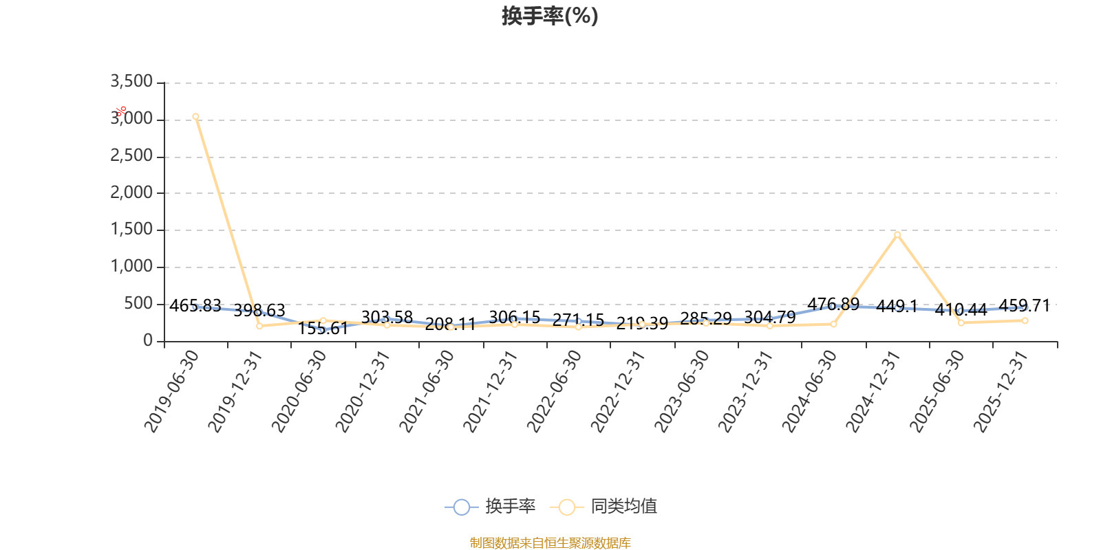 截至2025年12月31日,基金最近一年换手率约889.72%,持续1年高于同类均值。