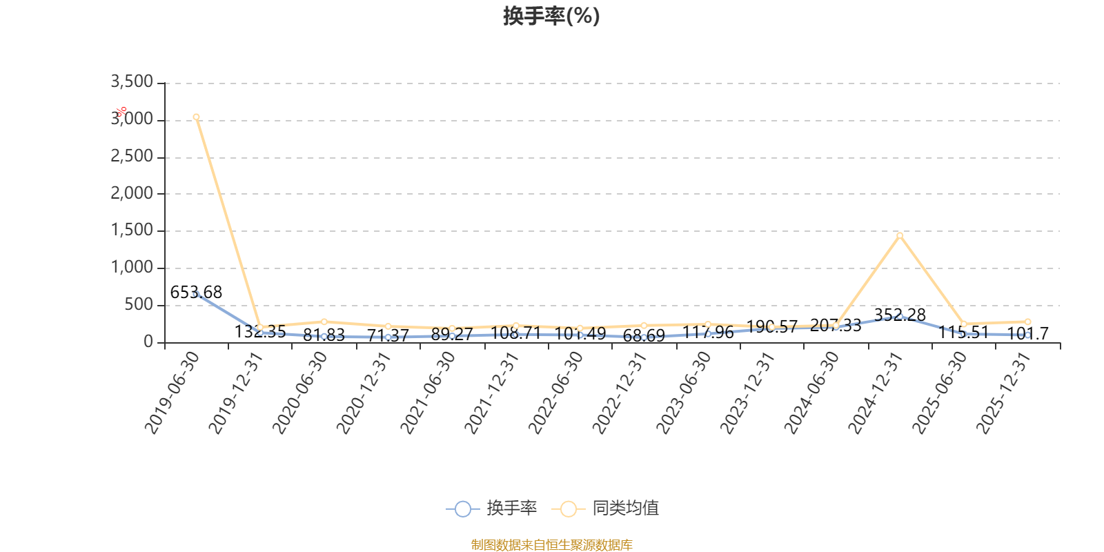 截至2025年12月31日,基金最近一年换手率约216.66%,持续低于同类均值。