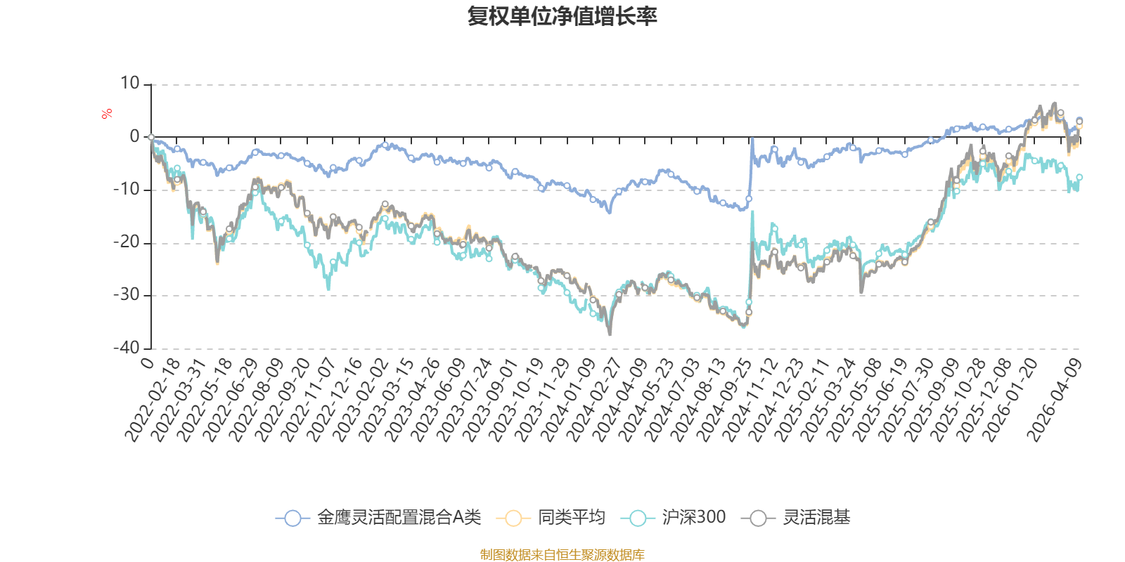 截至4月9日,金鹰灵活配置混合A类近三个月复权单位净值增长率为0.07%,位于同类可比基金563/1287;近半年复权单位净值增长率为0.47%,位于同类可比基金760/1286;近一年复权单位净值增长率为7.63%,位于同类可比基金1086/1286;近三年复权单位净值增长率为6.55%,位于同类可比基金813/1286。