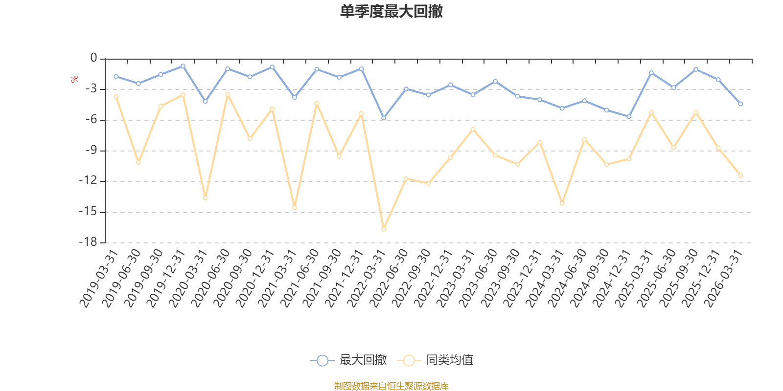 截至4月9日,基金近三年最大回撤为11.65%,同类可比基金排名156/1264。单季度最大回撤出现在2022年一季度,为5.8%。