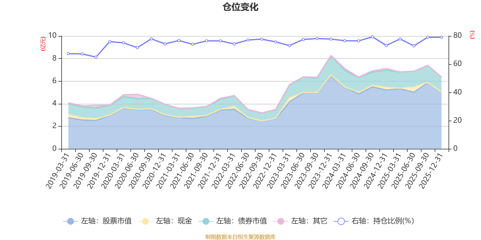 据定期报告数据统计,近三年平均股票仓位为76.83%,同类平均为86.12%。2024年三季度末基金达到79.42%的最高仓位,2019年三季度末最低,为65.07%。