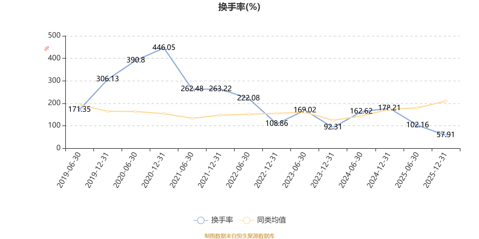 截至2025年12月31日,基金最近一年换手率约158.25%,持续1年低于同类均值。