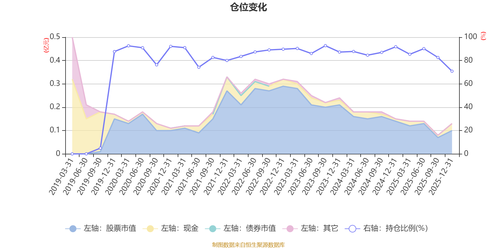 据定期报告数据统计,近三年平均股票仓位为86.39%,同类平均为72.57%。2023年三季度末基金达到92.74%的最高仓位,2019年上半年末最低,为0.04%。