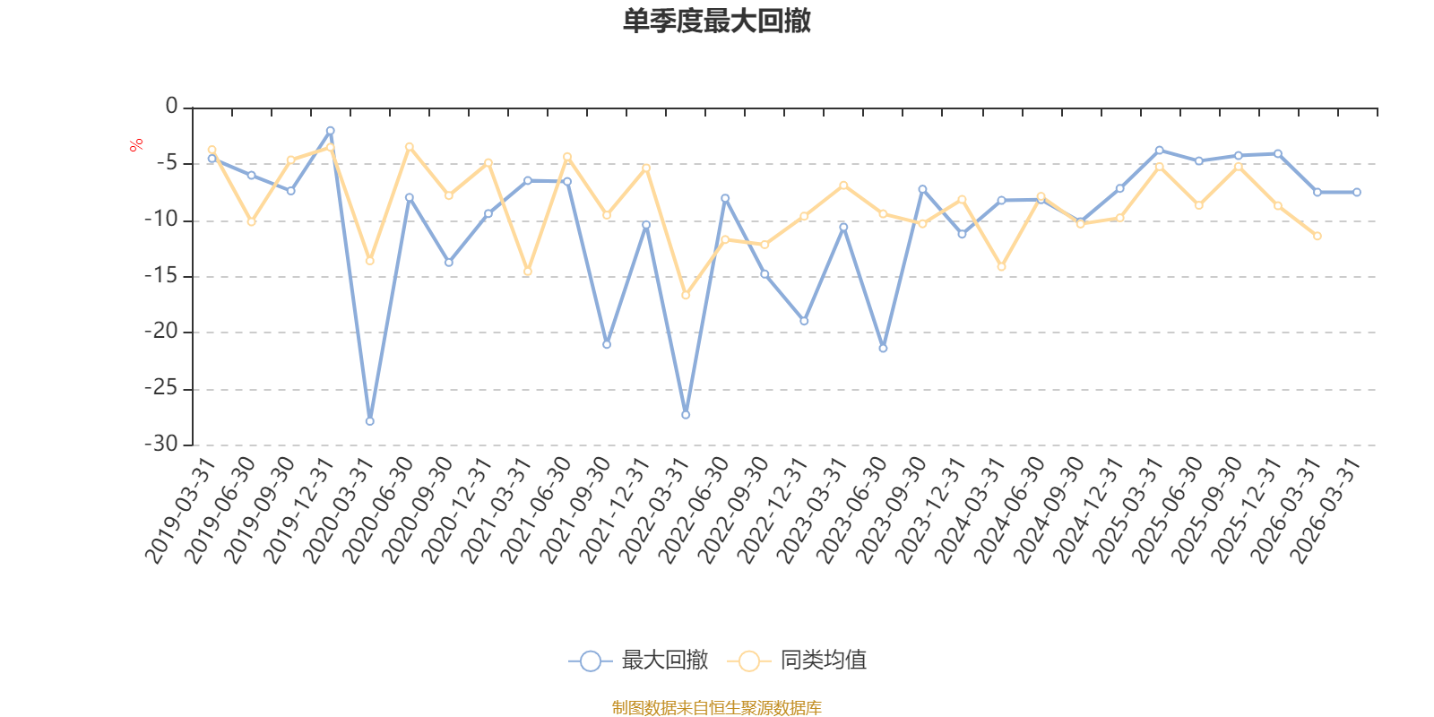 截至4月9日,基金近三年最大回撤为27.06%,同类可比基金排名494/1264。单季度最大回撤出现在2020年一季度,为27.89%。