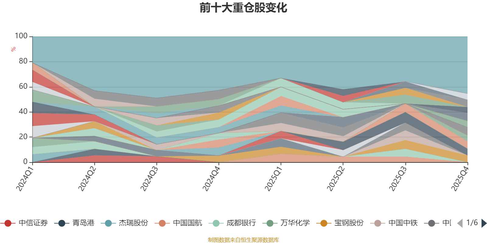 该基金持股集中度较高。截至2025年末,基金十大重仓股分别是中国平安、中国石油、工商银行、招商银行、宝钢股份、中国建筑、伊利股份、新华保险、山东高速、上海机场。