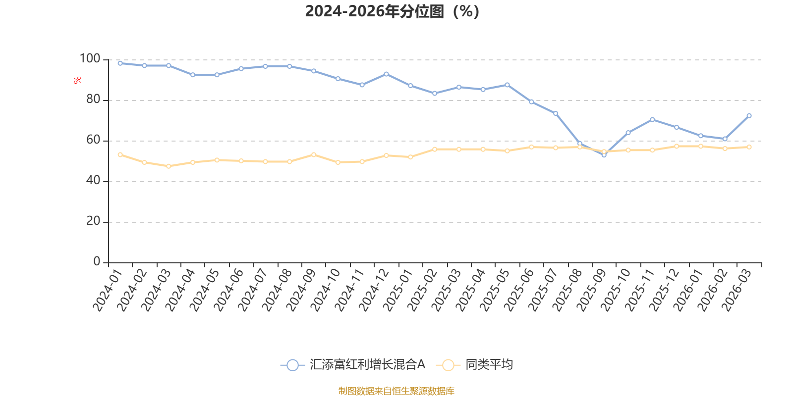 通过所选区间该基金净值增长率分位图,可以观察该基金与同类基金业绩比较情况。图为坐标原点到区间内某时点的净值增长率在同类基金中的分位数。