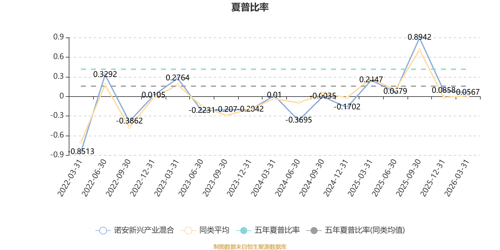 截至3月31日,基金近三年夏普比率为0.3374,位于同类可比基金367/550。