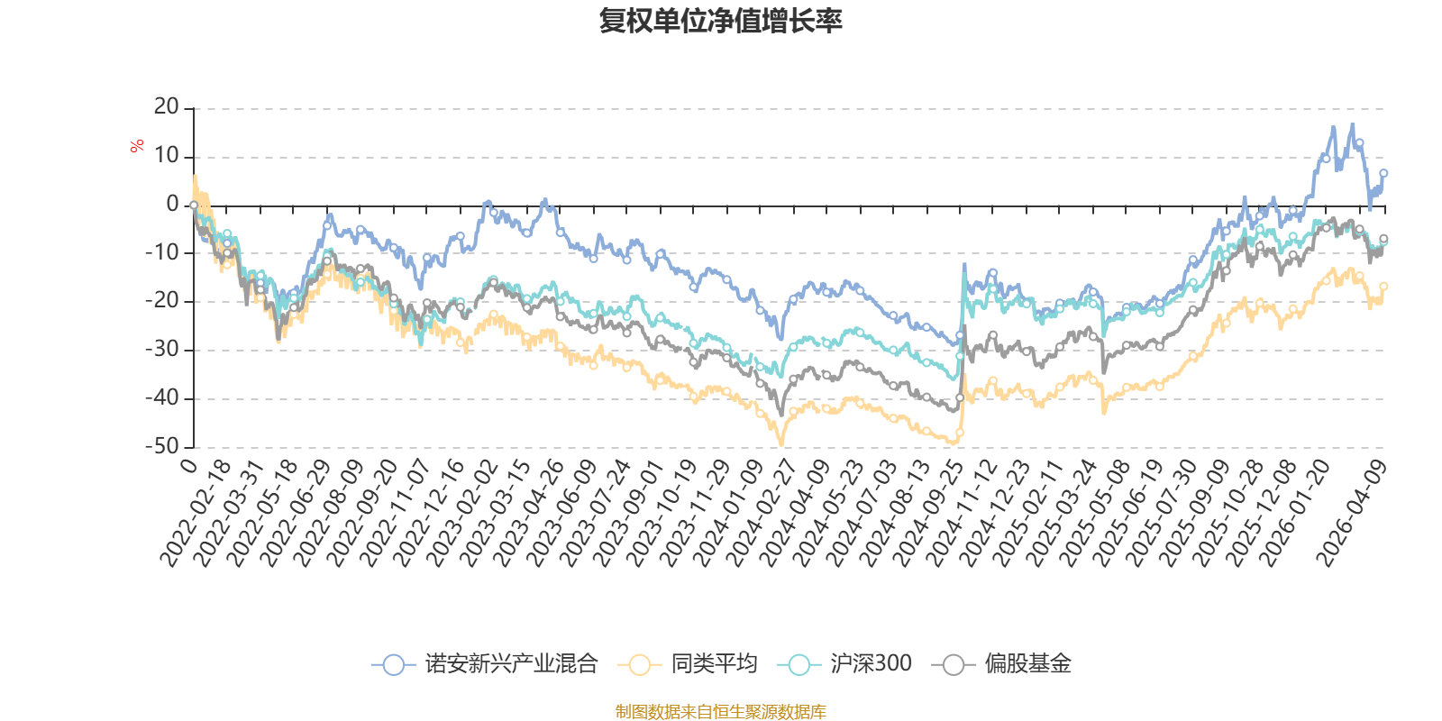 截至4月9日,诺安新兴产业混合近三个月复权单位净值增长率为-1.16%,位于同类可比基金310/621;近半年复权单位净值增长率为4.60%,位于同类可比基金209/621;近一年复权单位净值增长率为43.10%,位于同类可比基金260/618;近三年复权单位净值增长率为5.04%,位于同类可比基金364/559。