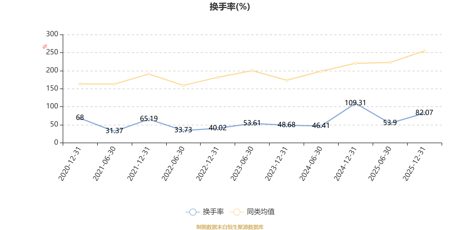 截至2025年12月31日,基金最近一年换手率约133.78%,持续低于同类均值。