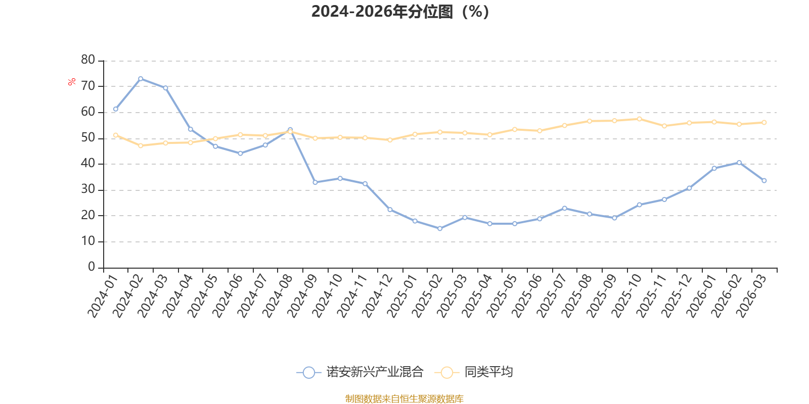 通过所选区间该基金净值增长率分位图,可以观察该基金与同类基金业绩比较情况。图为坐标原点到区间内某时点的净值增长率在同类基金中的分位数。