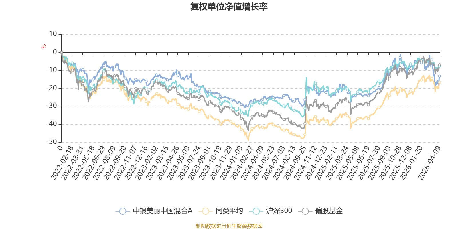 截至4月9日,中银美丽中国混合A近三个月复权单位净值增长率为-9.32%,位于同类可比基金605/689;近半年复权单位净值增长率为-10.18%,位于同类可比基金591/689;近一年复权单位净值增长率为17.91%,位于同类可比基金553/685;近三年复权单位净值增长率为-2.33%,位于同类可比基金296/417。