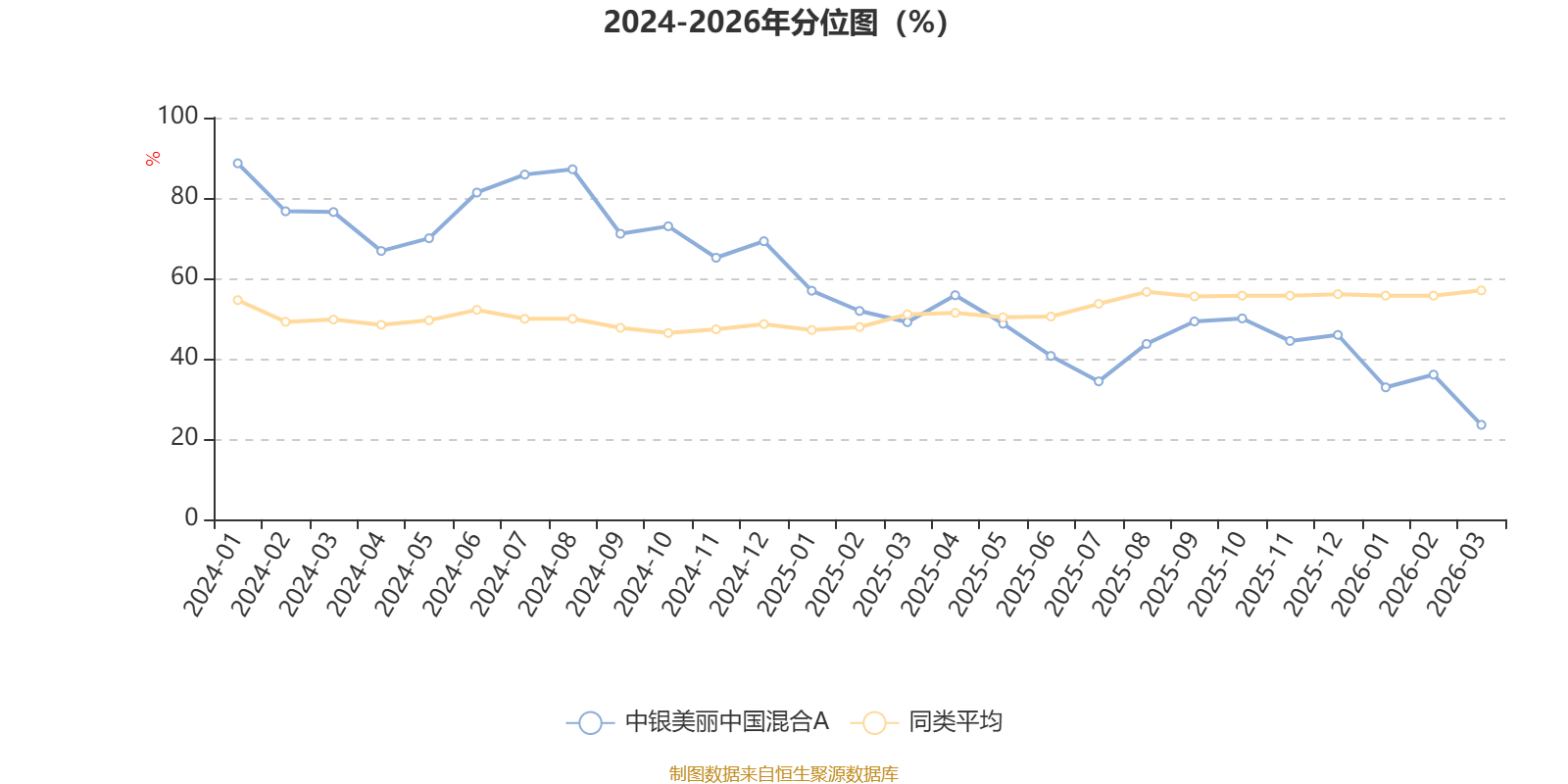 通过所选区间该基金净值增长率分位图,可以观察该基金与同类基金业绩比较情况。图为坐标原点到区间内某时点的净值增长率在同类基金中的分位数。
