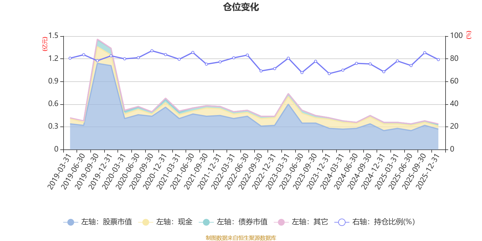 据定期报告数据统计,近三年平均股票仓位为75.04%,同类平均为84.04%。2020年三季度末基金达到87.12%的最高仓位,2023年末最低,为66.97%。