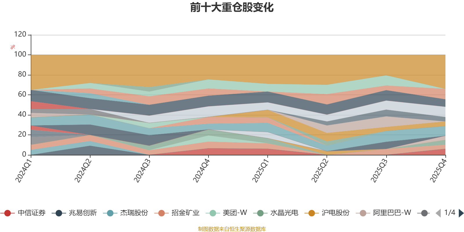 该基金持股集中度较高,近2年前十大重仓股集中度长期超过60%。截至2025年末,基金十大重仓股分别是中际旭创、腾讯控股、康方生物、立讯精密、中信证券、水晶光电、新易盛、蓝思科技、招金矿业、阿里巴巴-W。