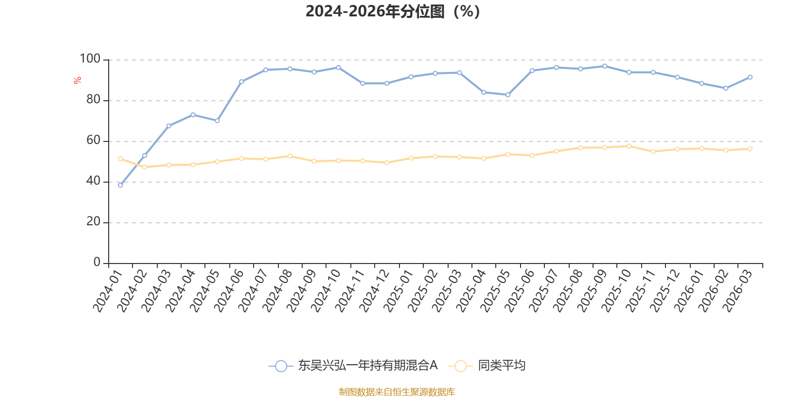 通过所选区间该基金净值增长率分位图,可以观察该基金与同类基金业绩比较情况。图为坐标原点到区间内某时点的净值增长率在同类基金中的分位数。