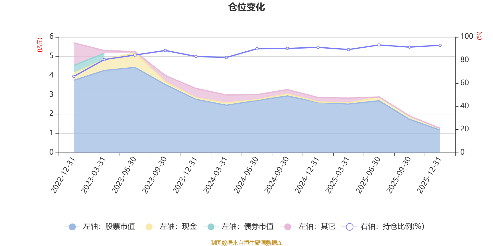据定期报告数据统计,近三年平均股票仓位为87.93%,同类平均为85.83%。2025年上半年末基金达到93.03%的最高仓位,2022年末最低,为65.89%。