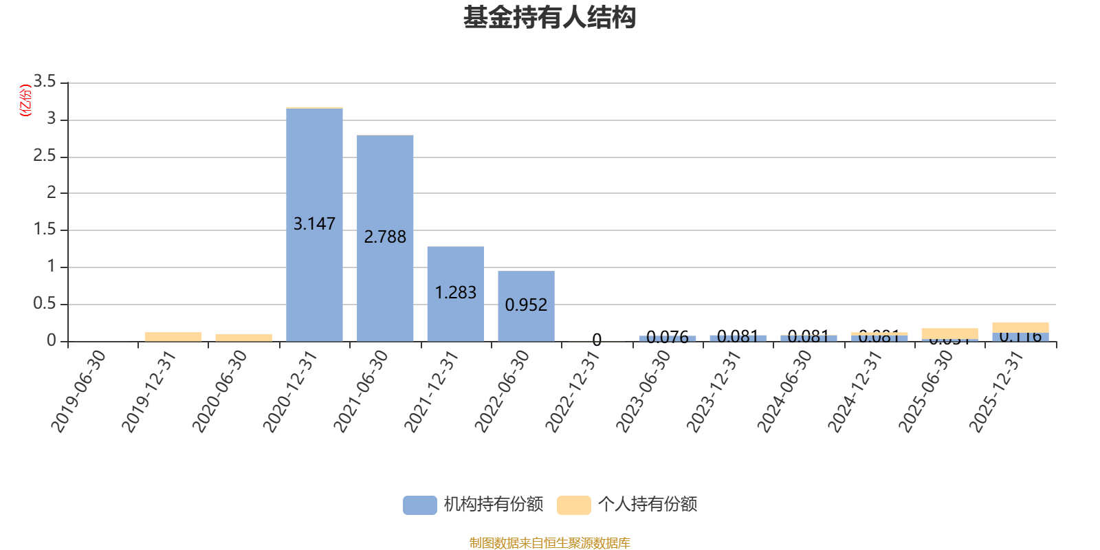 截至2025年12月31日,基金持有人共计4060户,合计持有2567.95万份。其中管理人员工持有153.41万份,占比5.97%,机构持有份额占比45.31%,个人投资者占比54.69%。