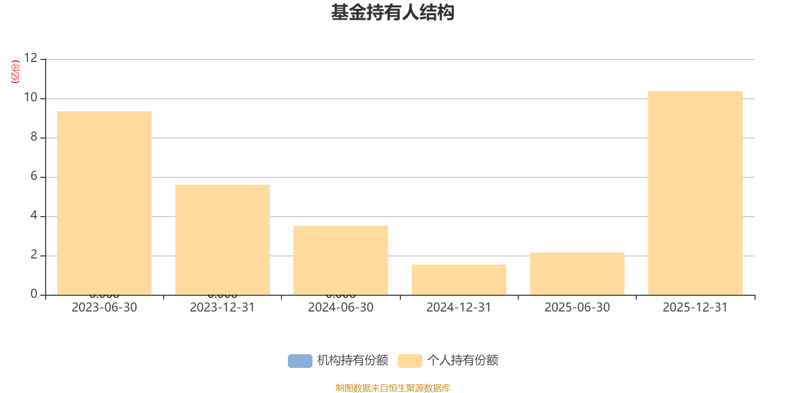 截至2025年12月31日,基金持有人共计5181户,合计持有10.36亿份。其中管理人员工持有8.52万份,占比0.01%,个人投资者占比100.00%。
