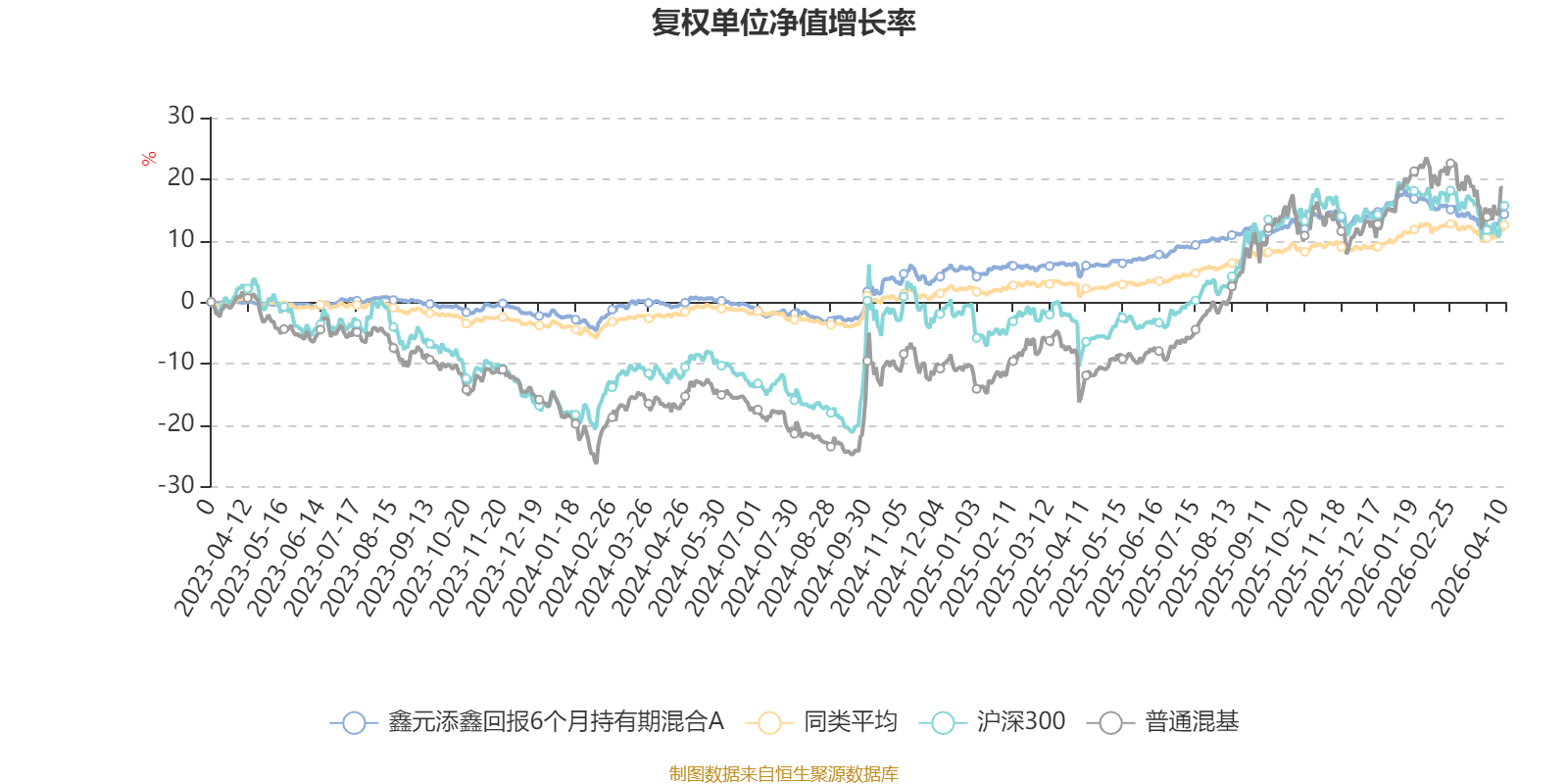 截至4月10日,鑫元添鑫回报6个月持有期混合A近三个月复权单位净值增长率为-2.85%,位于同类可比基金604/629;近半年复权单位净值增长率为1.07%,位于同类可比基金345/629;近一年复权单位净值增长率为8.20%,位于同类可比基金255/629;近三年复权单位净值增长率为14.40%,位于同类可比基金184/581。