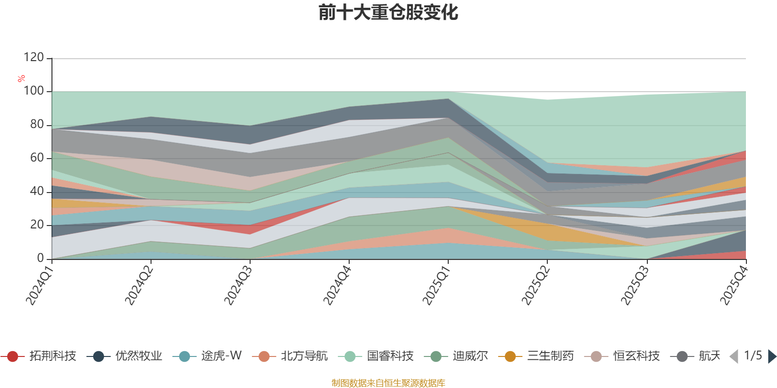 该基金持股集中度较高。截至2025年末,基金十大重仓股分别是优然牧业、皖仪科技、寒武纪、国光电气、香农芯创、思泉新材、拓荆科技、华泰证券、宁德时代、吉峰科技。