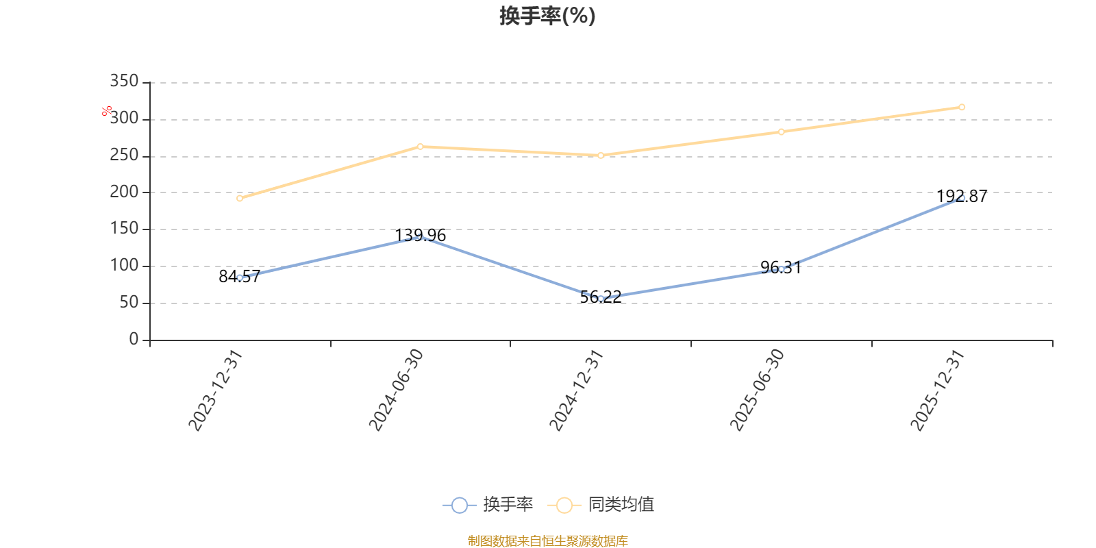 截至2025年12月31日,基金最近一年换手率约316.83%,持续低于同类均值。