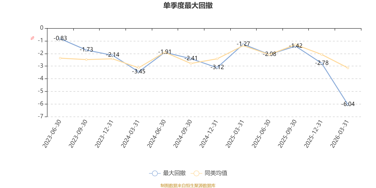 截至4月9日,基金近三年最大回撤为6.04%,同类可比基金排名266/534。单季度最大回撤出现在2026年一季度,为6.04%。