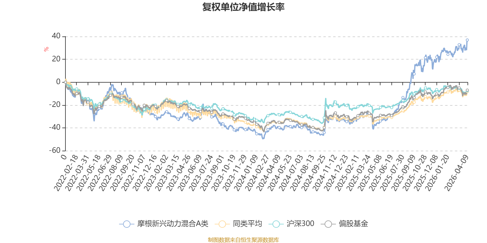 截至4月9日,摩根新兴动力混合A类近三个月复权单位净值增长率为7.09%,位于同类可比基金1/20;近半年复权单位净值增长率为14.38%,位于同类可比基金3/20;近一年复权单位净值增长率为131.57%,位于同类可比基金1/20;近三年复权单位净值增长率为85.92%,位于同类可比基金1/19。