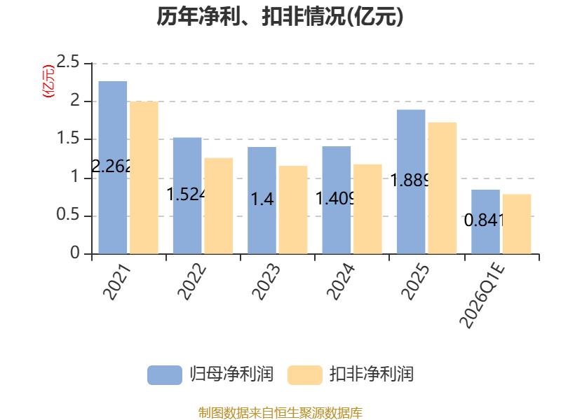 中证智能财讯道恩股份(002838)4月13日晚间披露业绩预告,预计2026年一季度归母净利润7971.19万元至8856.88万元,同比增长80%-100%;扣非净利润预计7363.17万元至8248.86万元,同比增长99.13%-123.08%;基本每股收益0.17元/股-0.19元/股。以4月13日收盘价计算,道恩股份目前市盈率(TTM)约为56.56倍-58.79倍,市净率(LF)约3.62倍,市销率(TTM)约2.18倍。