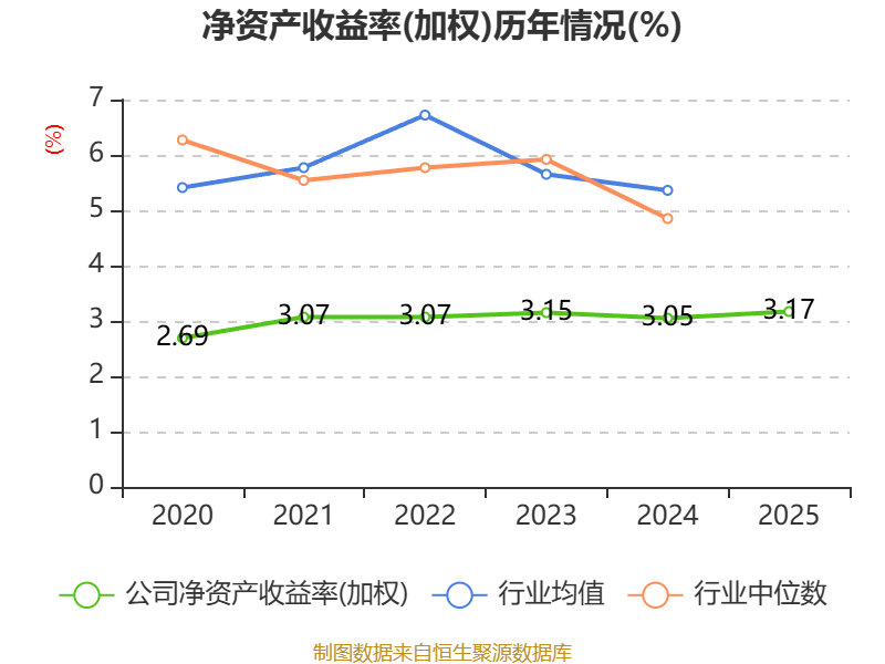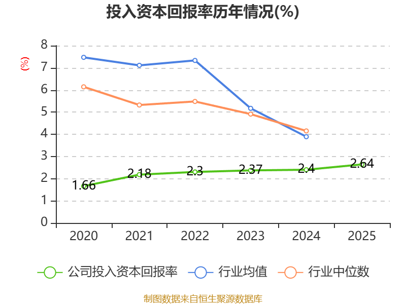 数据显示,2025年公司加权平均净资产收益率为3.17%,较上年同期上升0.12个百分点。公司2025年投入资本回报率为2.64%,较上年同期上升0.24个百分点。