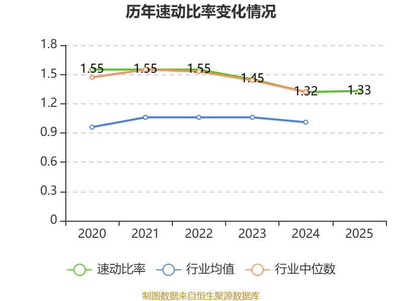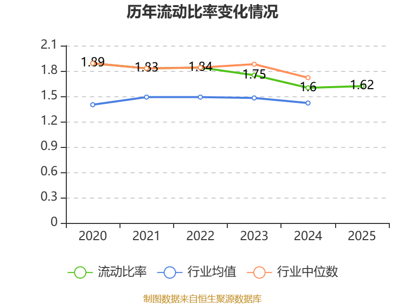 2025年,公司流动比率为1.62,速动比率为1.33。