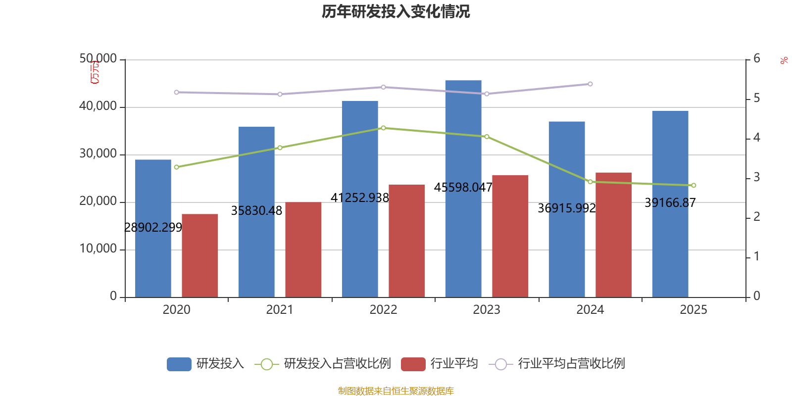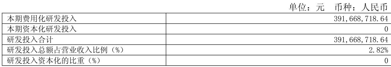 2025年全年,公司研发投入金额为3.92亿元,同比增长6.1%;研发投入占营业收入比例为2.82%,相比上年同期下降0.09个百分点。此外,公司全年研发投入资本化率为0%。