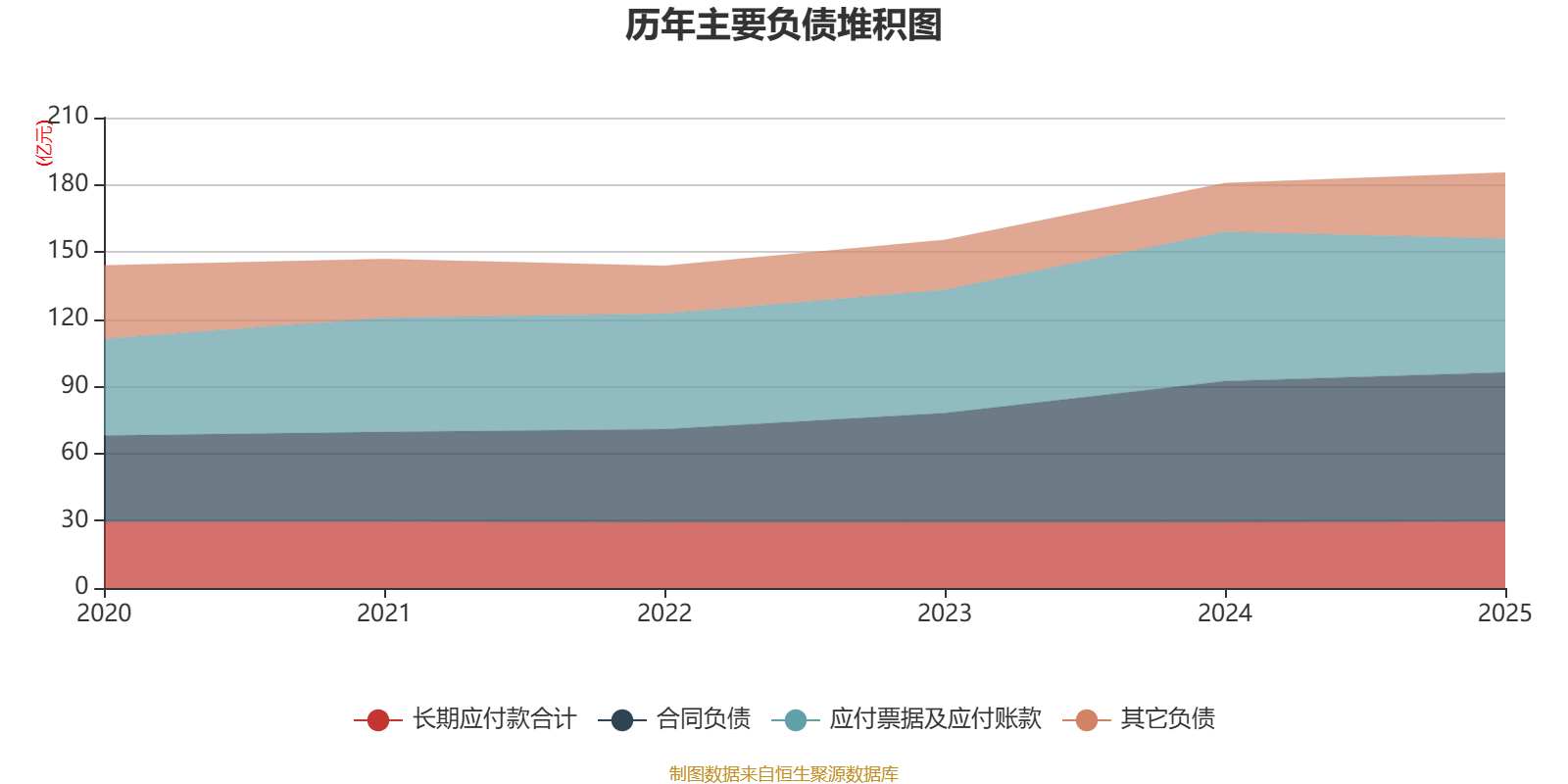 负债重大变化方面,截至2025年末,公司应付票据及应付账款较上年末减少10.5%,占公司总资产比重下降2.61个百分点;长期借款较上年末增加286.36%,占公司总资产比重上升1.42个百分点;合同负债较上年末增加6.17%,占公司总资产比重上升0.62个百分点;短期借款占公司总资产的0.62%,上年末为0。